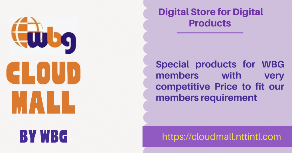 Here we specially designed CLOUD MALL for WBG members to shop variety of digital products to met and fulfill industries requirements with very competitive price as well as flexible payment option